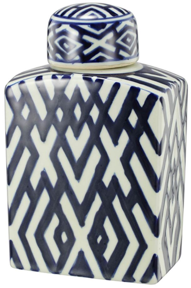 The gorgeous Carlyle lidded jar combines traditional patterns and contemporary craftsmanship for timeless appeal. This piece is crafted from durable porcelain, glazed in a soft white and decorated with deep blue geometric patterns.Read More