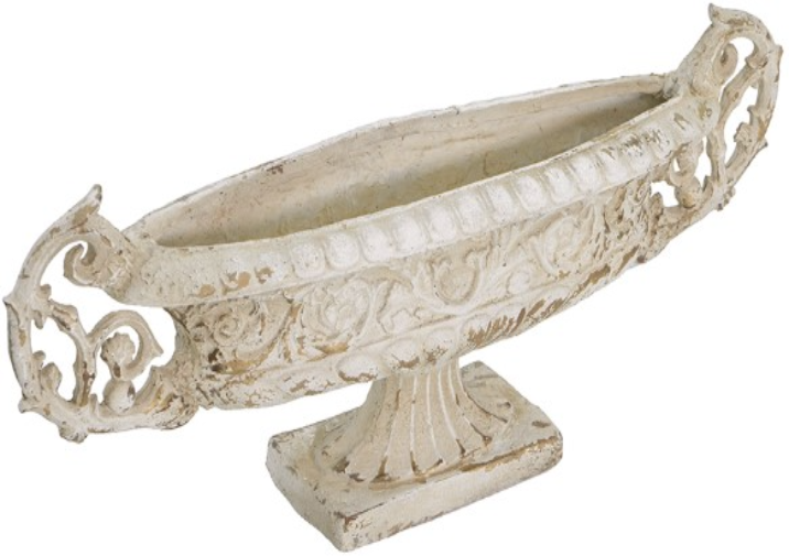Capturing the intricate beauty of vintage artwork, this decorative vase features a weathered white finish, a sturdy pedestal base, and a pair of ornate scrolling handles. Display it empty, as part of a refined ensemble, or as a vessel for a collection of lush greenery.Read More