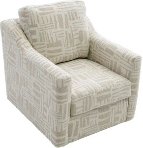 Upholstered in a patterned cream and light gray woven fabric with taupe undertones, this swivel chair features a reversible back and seat cushion, padded track arms, tailored base, with a 360-degree swivel base.Read More