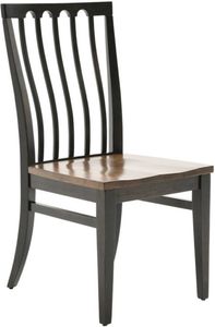 Crafted from solid rustic cherry wood, this charming dining chair showcases a two-toned design with a cider-colored seat and mocha-colored frame. Its classic slat back, contoured scooped seat, and tapered legs offer lasting comfort and timeless appeal for any dining space.Read More
