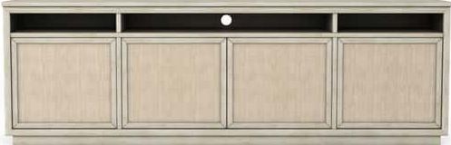 The A.R.T. Furniture® Cotiere Linen Entertainment Console features contemporary style, linen finish, and is crafted from parawood solids, mixed plit cathedral quarter-white oak veneer and fabric, terrazo stone, and metal.Read More