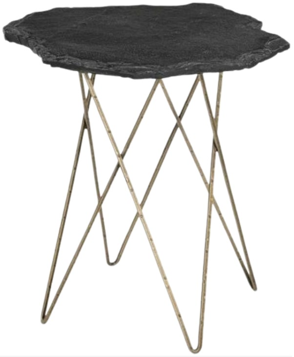 The Cleo Accent Table exudes modern elegance with its striking live edge sandblasted black marble top and antique brass metal base. Each piece showcases the natural beauty of the marble, with its unique texture and live edge design adding a touch of sophistication to any space.Read More
