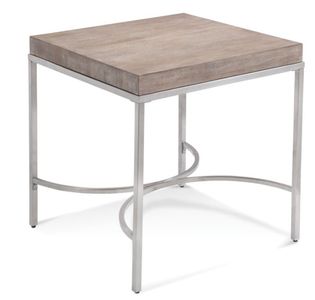 The Fenning Square End Table features a birch top with a stainless double C's base. Adjustable floor levelers. Finish: stainless and bleached birch. Materials: stainless steel and birch veneers. COO: Vietnam.Read More