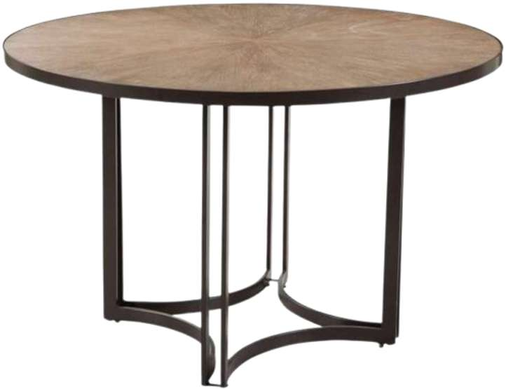 The Trucco Round Dining Table features modern transitional styling. The round, brown poplar wood top sits on an angular metal base. The steel frame is finished in a bronze powder coated finish, and is completed with adjustable floor levelers. Comfortably seats 4 people.Read More