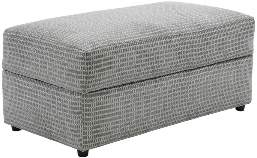 Upholstered in a patterned slate gray and off-white woven fabric, this storage ottoman features a plump cushion, hidden storage on the inside, tailored base, and tapered block feet in an espresso finish.Read More