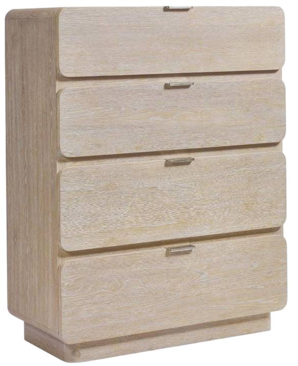 Elemental design gets a refined and modern update for the Antibes tall drawer chest. Softened corners and shapely drawer fronts have an organic simplicity with the rustic Roz finish. The case is supported with a plinth base and features four pull-to-open drawers with cast aluminum pulls.Read More