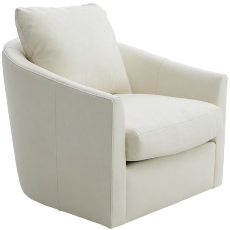 Upholstered in luxurious bone-colored Italian top-grain leather, this swivel chair features a generously plump back and seat cushion, soft padded arms, a refined tailored base, and a smooth 360-degree swivel mechanism for effortless comfort and style.Read More