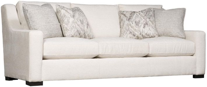 The Germain Sofa features a spring down cushions and fiber back pillows that provide soft support while throw pillows bring additional comfort and color to the room. Wide wood legs support its sturdy frame, ensuring a comfortable place to lounge.Read More