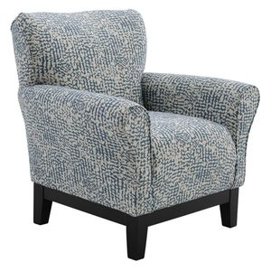 With a swooped back and flared arms this chair has a unique modern look. The tight upholstered seat sits atop an Espresso finished base and legs for a stylish appearance.Read More