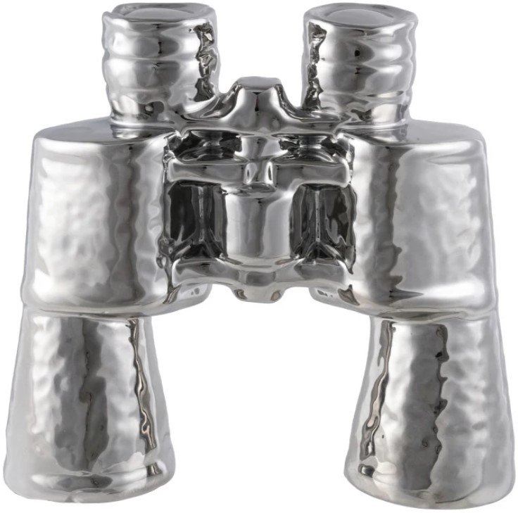 Sleek and sculptural, these chrome stoneware binoculars bring a modern edge to any space. Designed purely as décor, they add shine and artistic interest to shelves, consoles, or desktops. The reflective chrome finish paired with stoneware construction creates a bold accent that elevates contemporary interiors.Read More