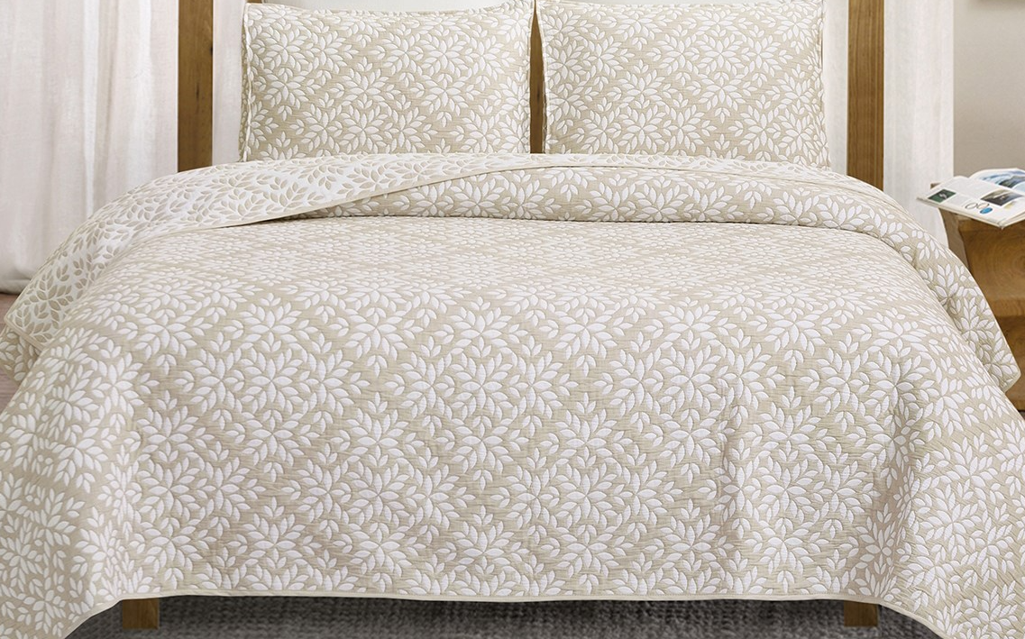 This three-piece king coverlet set offers lightweight comfort perfect for everyday use or seasonal layering. The soft fabric feels cozy against the skin, while the subtle leaf pattern adds gentle visual interest. A practical bedding choice that brings comfort and a refreshed look to your bedroom.Read More