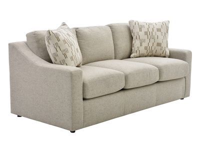 Upholstered in an oatmeal woven fabric with taupe undertones, this sofa features padded back cushions, reversible seat cushions, padded track arms, two coordinating toss pillows, a queen-size memory foam pull-out mattress, and a tailored base.Read More