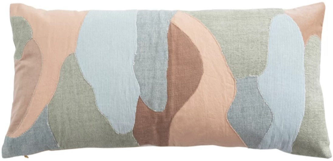 One-of-a-kind lumbar pillow with intricate multicolor patchwork design