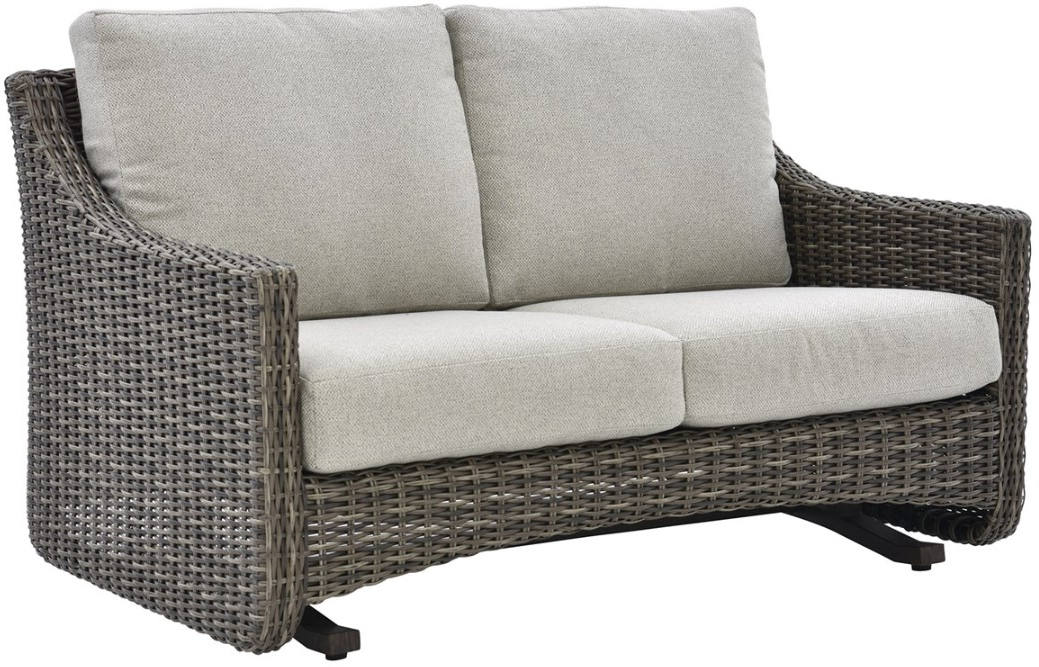 The Hickory all-weather wicker glider loveseat combines cozy comfort with timeless outdoor style. Crafted from durable wicker in a warm hickory finish, it features plush reversible cushions in taupe and gray Sunbrella® fabric, sleek track arms, and a smooth gliding base for ultimate relaxation.Read More