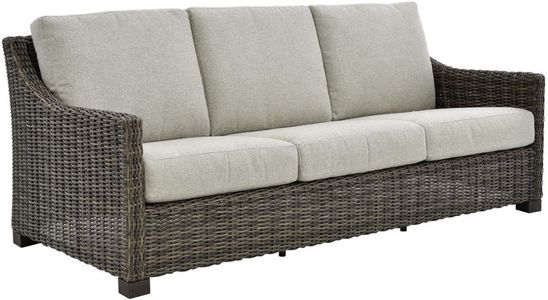 Crafted of durable all-weather wicker in a rich hickory finish, this elegant sofa features plush, reversible cushions upholstered in taupe and gray crosshatch Sunbrella® outdoor fabric, offering exceptional comfort, fade resistance, and enduring style for any patio or garden space.Read More