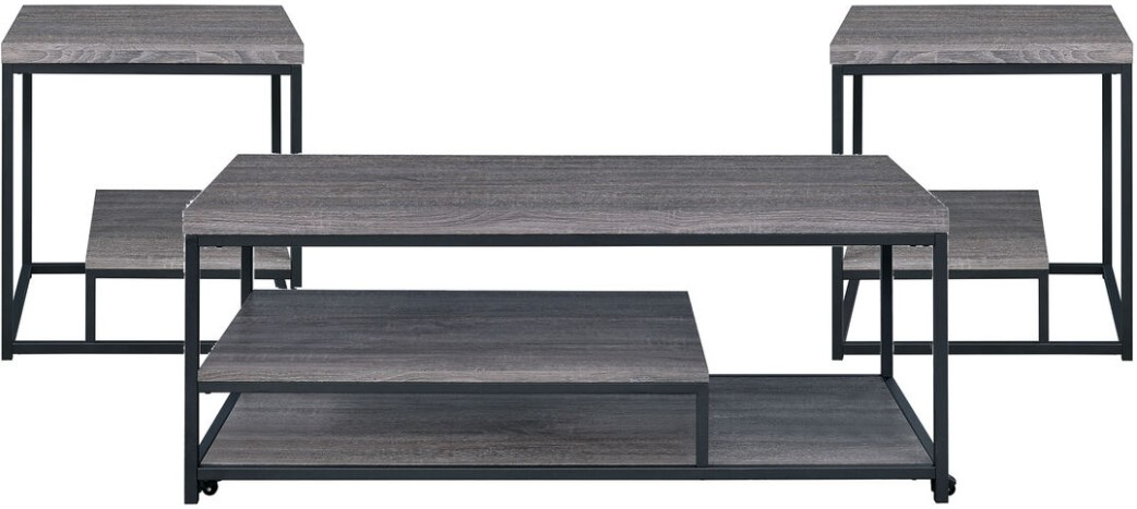 There is plenty of shelf space to display your coffee table books and any decor you might have. The wood is finished in a weathered gray oak that will easily transition into any living space with any furnishings. Add this trio to your home today for an instant timeless look!