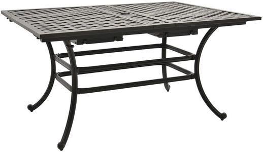 This table is made with heavy-duty cast aluminum in a rich hand-painted, multi-layered dark antique bronze finish that is chip and fade resistant. It also features a lattice top, two 12” leaves, optional umbrella hole, and splayed legs.Read More