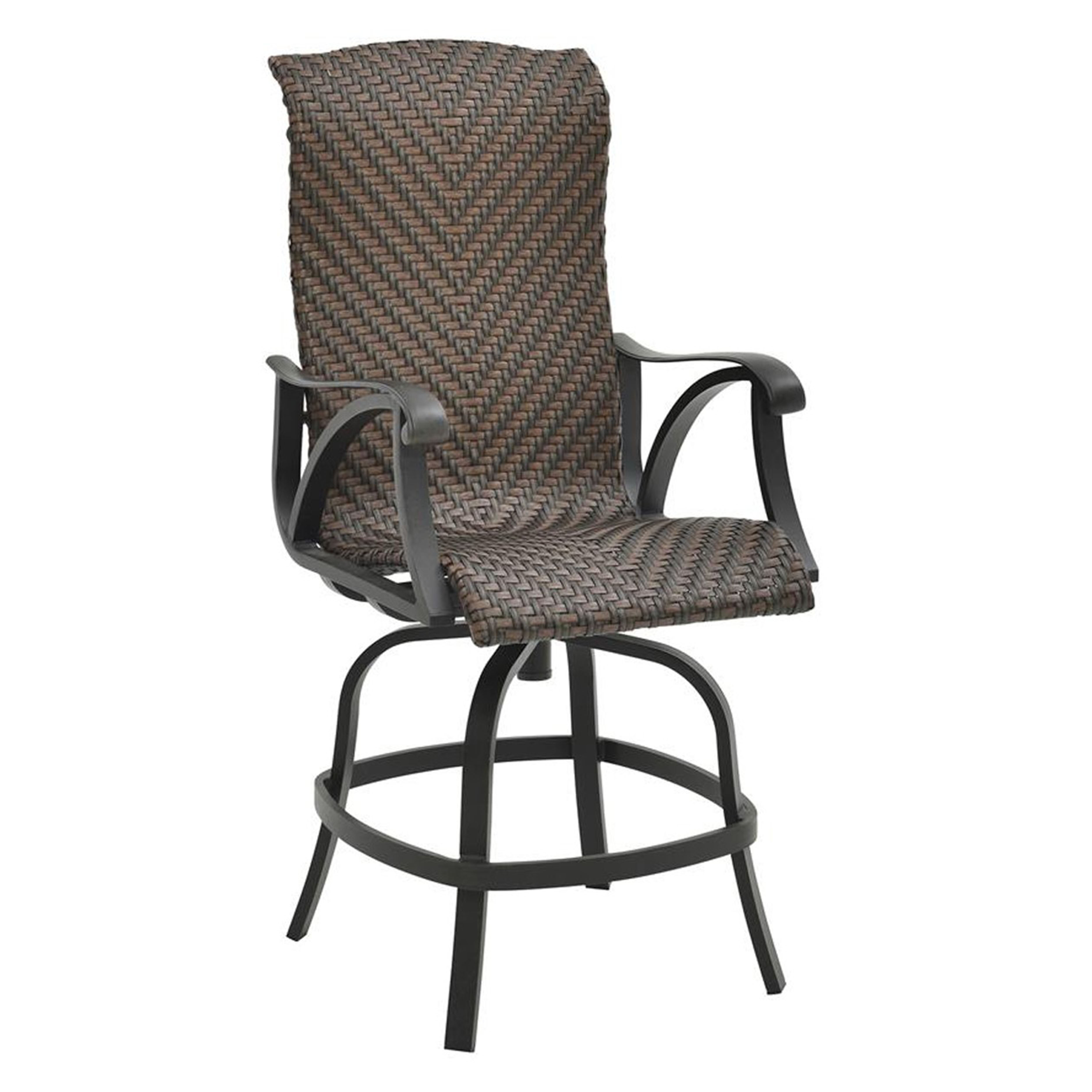 Crafted of aluminum in a charcoal finish, this patio counter stool features a dark brown woven back and seat as well as 360-degrees swivel.Read More