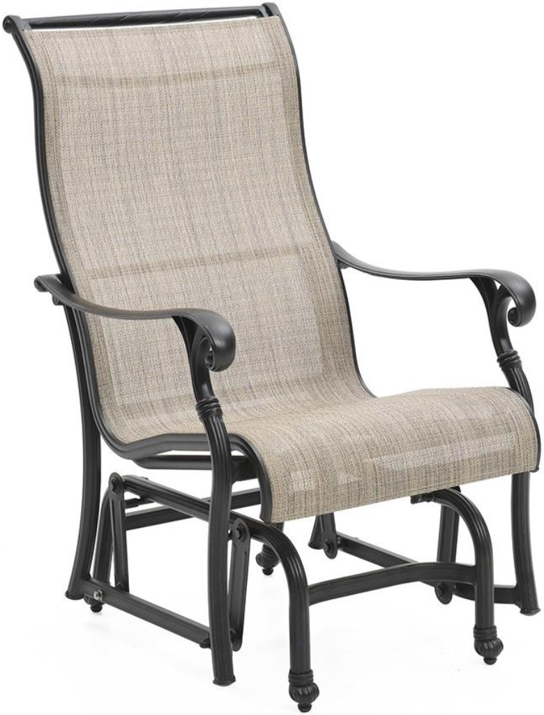 Style and function unite in this cast-aluminum single glider. The frame showcases a rich midnight brown finish, while the sling-style back and seat contrast in light pecan for a crisp, inviting look. A perfect blend of durability and comfort for relaxed outdoor living.Read More