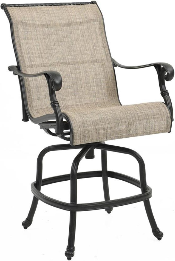 Style and function unite in this cast-aluminum counter stool finished in rich midnight brown with a light pecan sling back and seat. The 360-degree swivel and elegant snail-feet design deliver comfort and sophistication. Built to last, it’s the perfect upscale addition for outdoor bars or casual patio seating.Read More