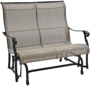 Style and function unite in this cast-aluminum double glider. The frame showcases a rich midnight brown finish, while the sling-style back and seat contrast in light pecan for a crisp, inviting look. A perfect blend of durability and comfort for relaxed outdoor living.Read More
