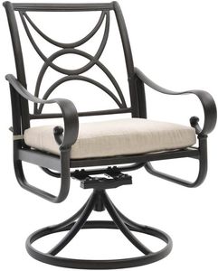 The Santa Barbara dining swivel rocker features lightweight, yet durable aluminum frame with 8-step powder-coated finish in desert bronze, scrolled arms, decorative back, versatile weather resistant cushion in a cast ash color, and a 360-degree swivel and rocking base.Read More