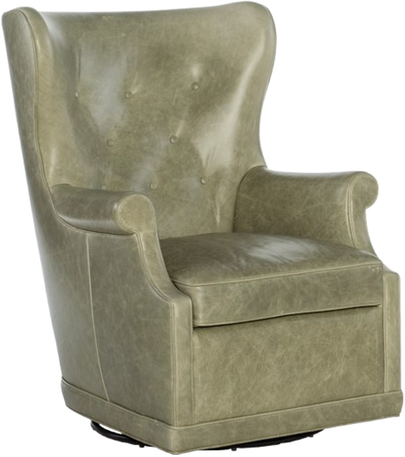 The timeless wing chair gets a softened, organic flair in this shaped silhouette with a tight high back with button tufting and loose seat cushion with welt trim. The chair is covered in aniline top grain bellaire tranquil sage leather.Read More