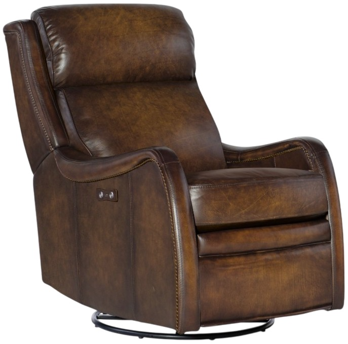 Welcoming and warm, the Stark power recliner with swivel glider recliner features jaunty scoop arms and a modified wing bustle back with subtle nailhead trim. The casual but classic recliner features the cozy brown brindisi san marco handwiped finished leather for style, durability and cleanability.Read More