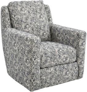 Upholstered in an off-white woven fabric with a navy-blue and taupe patterns, this chair features a padded back, reversible seat cushion, padded track arms, tailored base, and a 360-degree swivel and gliding base.Read More