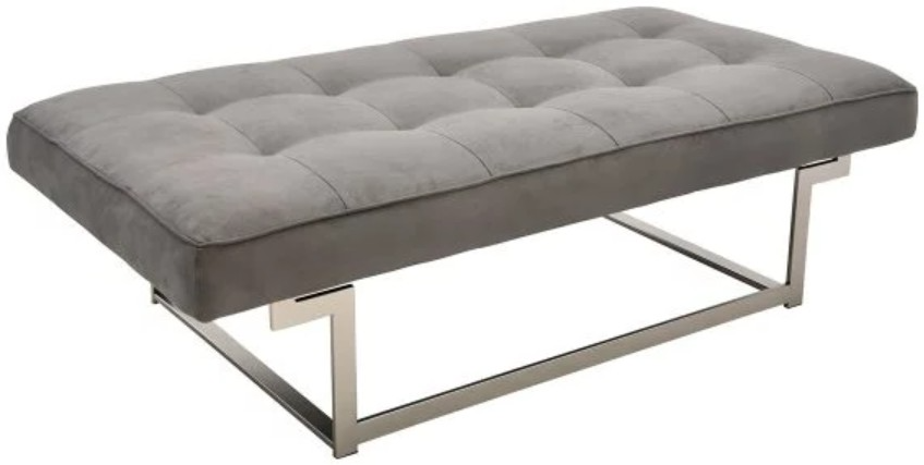 The Ashbury ottoman features a sleek brushed nickel metal frame and a plush, tufted gray suede cushion, effortlessly blending modern elegance, durability, and luxurious comfort to elevate any contemporary living space.Read More