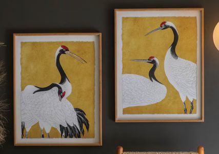 Majestic black and white birds rest against a golden background. These simple framed prints look good in a neutral space or as a colorful addition to dark or muted walls.Read More