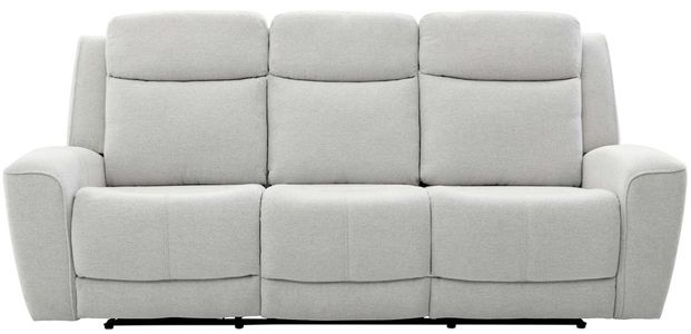 Upholstered in a light gray woven fabric with dark gray and black undertones, this sofa features power reclining headrests and chaise footrests, padded track arms, stitched accents, two USB ports, and two USB-C ports.Read More