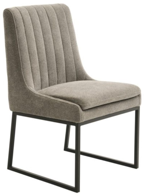 Upholstered in a gray woven fabric with black and dark gray undertones, this Kennedy chair by KUKAHOME features a padded channeled back, a padded seat cushion, and a black metal frame.Read More