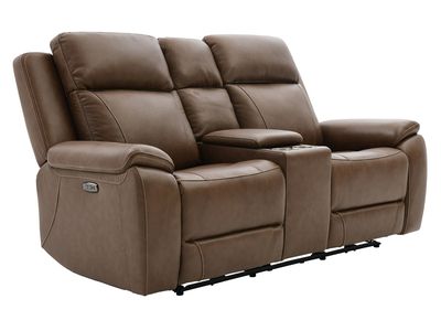 Upholstered in a chestnut brown leather where body contact occurs and matching vinyl everywhere else, this loveseat features power reclining headrests and chaise footrests, padded arms, padded lift-top storage with a lighted USB port and USB-C port inside, two cupholders, stitched accents, with two USB ports and two USB-C ports on the sides.Read More