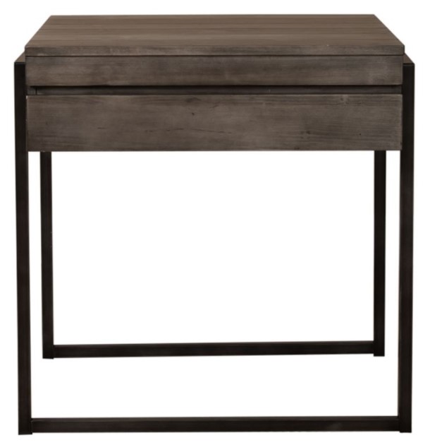 Accent your space with the urban style Gateway end table. Crafted of pine veneers with powder coated metal tubing, this piece features a weathered gray finish, one fully stained full extension drawer for additional storage, groove lines that create a planked look, anchored by tube metal legs.Read More