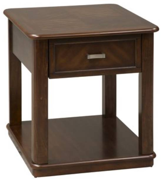Sleek and chic, the Wallace collection ups your fashionable taste to new heights. The dark, toffee finish and fancy-face veneer tops fill your leisure space with traditional sentiments and contemporary flair. Arrange your décor and other essentials in the convenient storage options and delight in the refreshing looks of this Liberty Furniture collection.