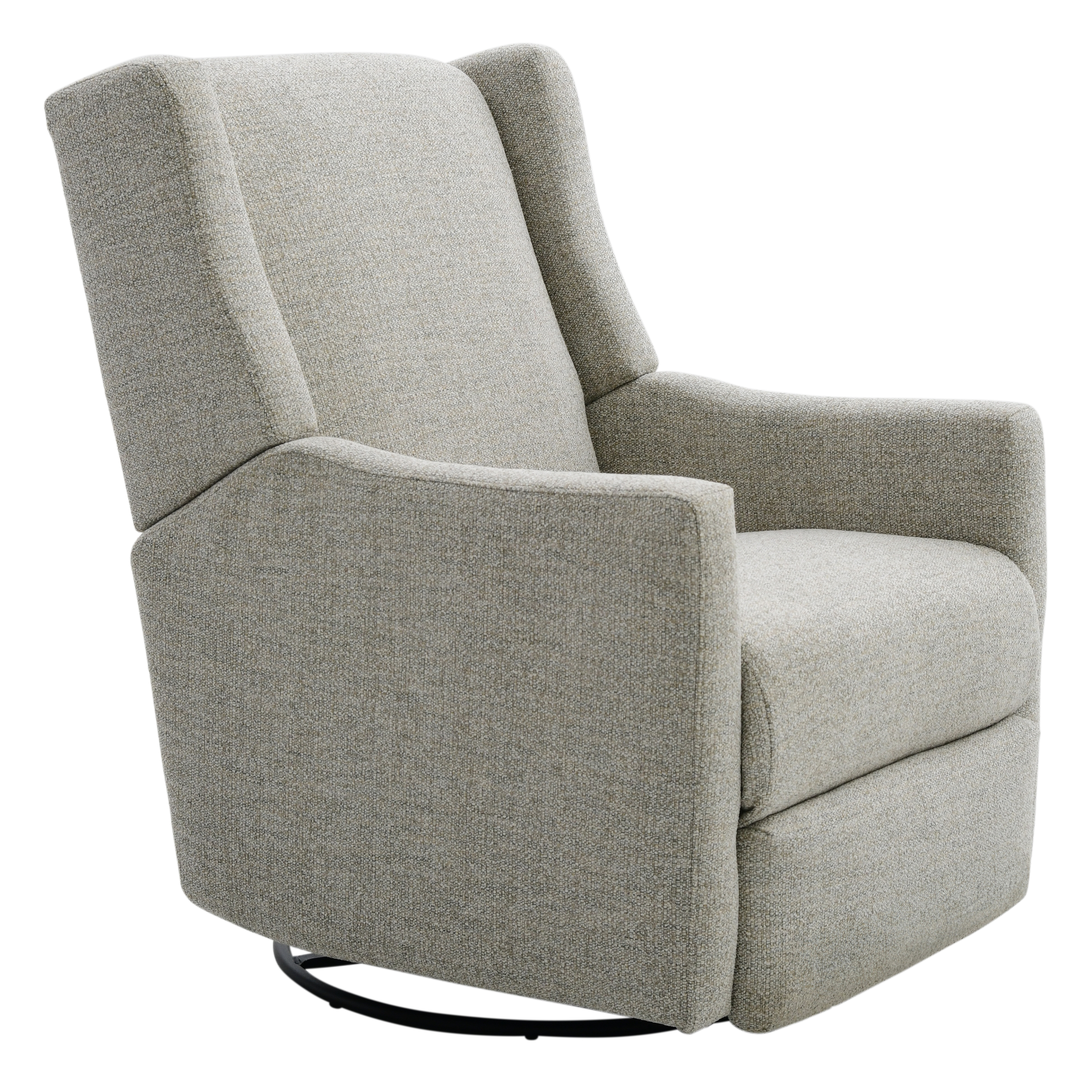 Upholstered in a cream woven fabric with taupe, green, gray, and medallion yellow undertones, this swivel glider recliner features a padded tight back, plump seat cushion, padded track arms, a footrest, and a 360-degree swivel and gliding base.Read More