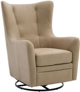 Upholstered in an ivory top-grain leather, this swivel chair features a padded tufted tight back, a plump seat cushion, padded tapered arms and tailored base, with a 360-degree swivel base.Read More