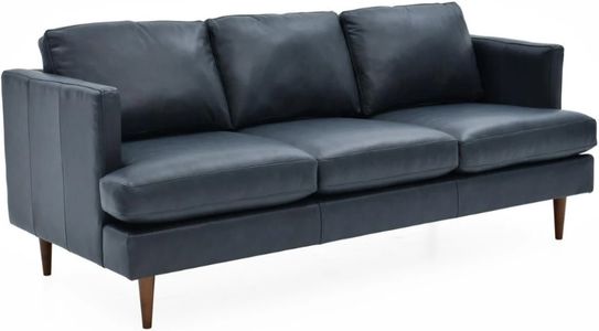 The Allenby sofa blends Mid-Century charm with modern luxury. Covered in supple top-grain navy leather, it offers inviting comfort with padded arms and a tailored base. The tapered legs in an autumn brown finish add warmth and sophistication, making it a standout piece in any living room.Read More