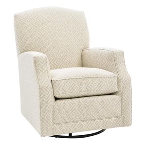 Upholstered in a taupe and cream patterned woven fabric, this swivel glider chair features a padded back, plump reversible seat cushion, padded track arms, tailored base, with a 360-degree swivel and gliding base.Read More