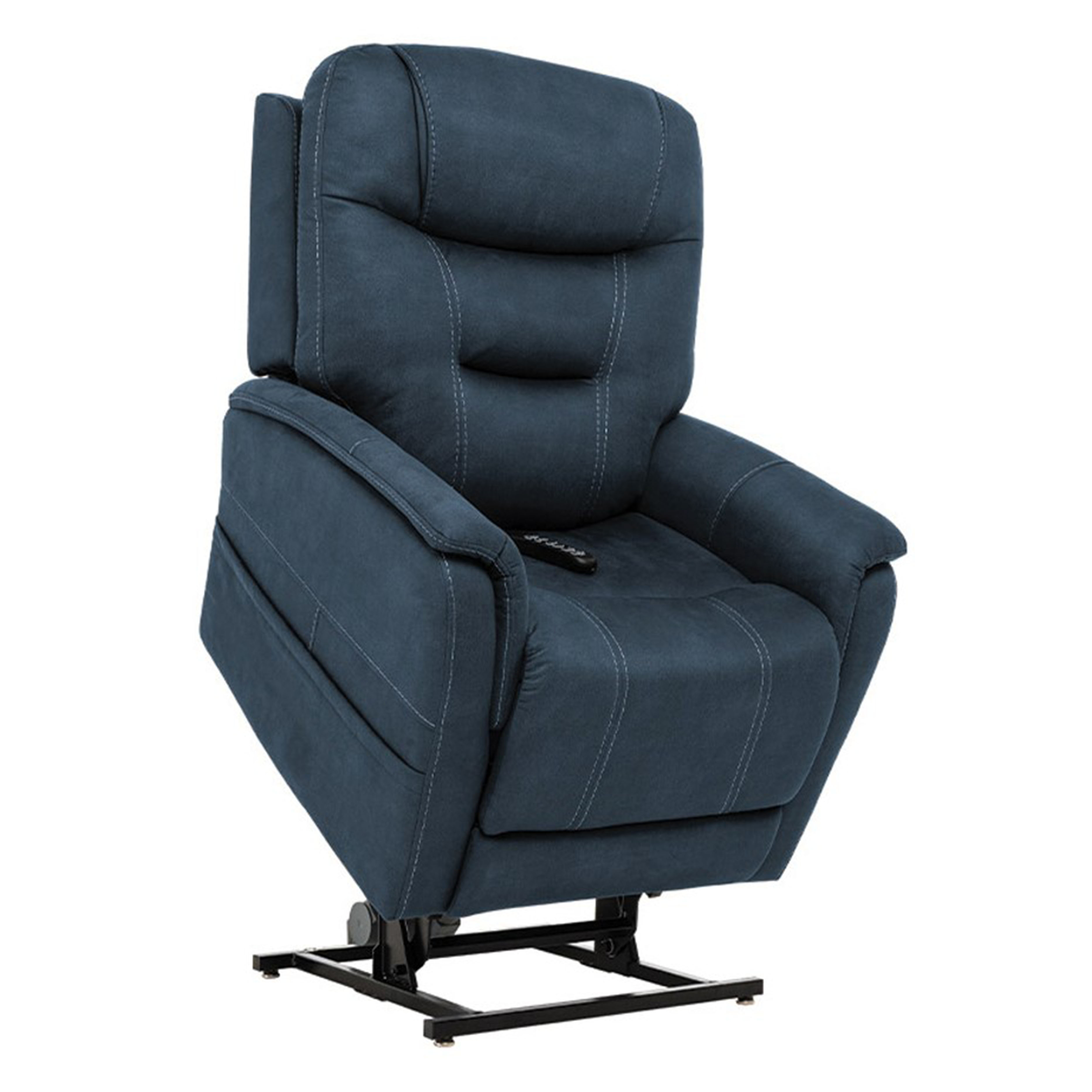 This medical-grade power lift recliner covered in a dark ocean blue fabric features adjustable headrest, lumbar support, reclining back and chaise leg rest with lay flat functionality. The padded back and arms have stitched accents and there is a discreet pocket on each side for convenient storage.Read More