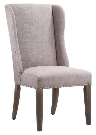 This generously-proportioned captain's chair features a classic wingback design with brass nailheads and gray wood legs