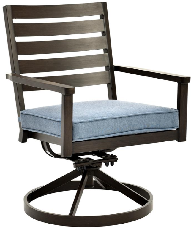 With a nod to Danish mid-century modern design, the Adeline dining swivel rocker has an aluminum fully-welded frame in a hand-finished mahogany brown and features a ladderback, seat cushion in a spectrum denim Sunbrella® fabric and 360-degree swivel.Read More