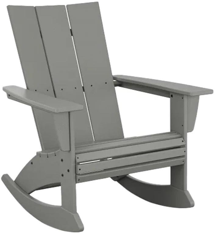 Crafted of genuine Polywood lumber in a slate gray finish, this Adirondack rocking chair features an oversized seat, large curved back slats, waterfall front, and a smooth rocking profile. Polywood is durable and made from recycled plastic that’s built to withstand all weather conditions.Read More