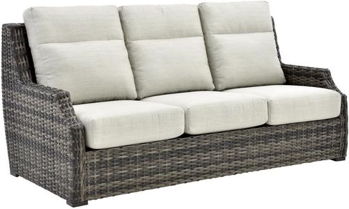 The Blue Bay outdoor sofa combines coastal elegance with lasting comfort. Crafted of all-weather woven wicker in a warm canola seed finish, it features plush oyster-colored reversible back and seat cushions for versatile use and easy care. Perfect for relaxing outdoors in timeless, inviting style.Read More