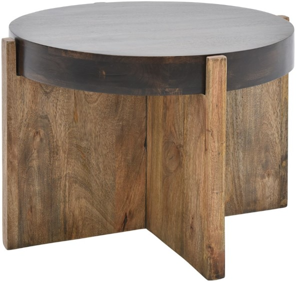 This round end table blends style and function with its mix of natural materials and finishes. Featuring a removable top crafted from walnut solids in a black finish and an X-style base made from mango solids in a natural tone, it adds modern contrast and practicality to any space.Read More