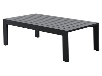 With an aluminum frame in a black finish, this coffee table features a slatted top and block legs.Read More