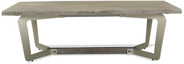 The Riverside Furniture rectangular shaped coffee table is a piece from the Waverly Collection. This coffee table is constructed of a live-edge Acacia solid top that is finished in Sandblasted Gray and has a metal base.Read More
