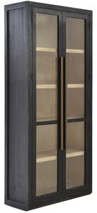 Crafted from solid Brazilian pine wood in a rich espresso finish, this display cabinet features two glass-inset doors, three spacious shelves for storage or display, metal door handles in a gold finish for a touch of elegance, and tapered feet that complete its refined look.Read More