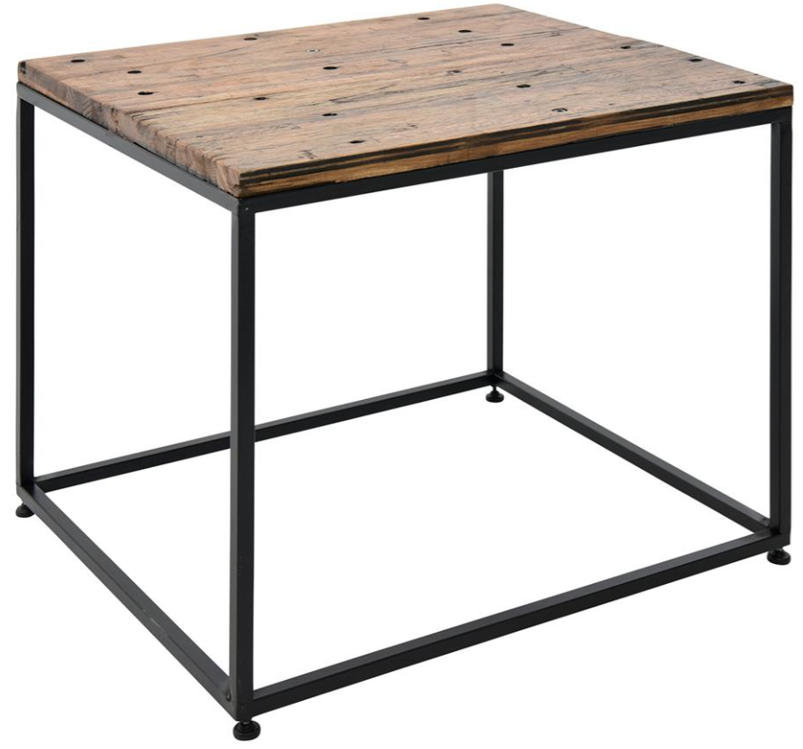 Crafted of reclaimed oak wood planks in varying shades of brown and black, this end table features a handsome top with exposed bolts, and a metal frame in a black finish. Due to this being reclaimed wood, variations should be expected and treasured as a unique element.Read More